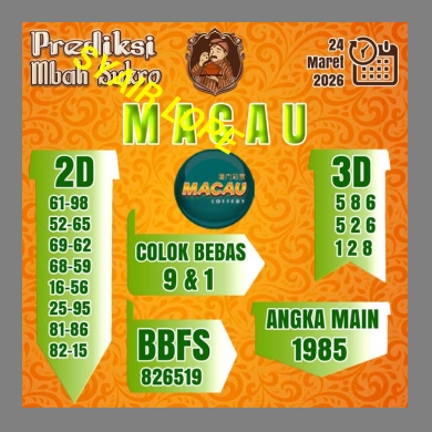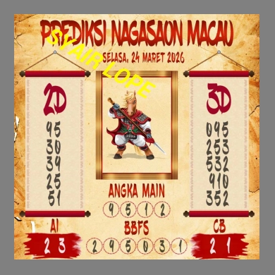 SYAIR MACAU akan berisikan gambar karikatur dilengkapi dengan kode angka toto macau yang dihasilkan oleh berbagai master kode macau yang akan membantu para pemain meraih kemenangan lebih besar. Selalu gunakan prediksi dan kode dengan hati-hati selalu kombinasi dengan rumus dan metode prediksi yang anda miliki.